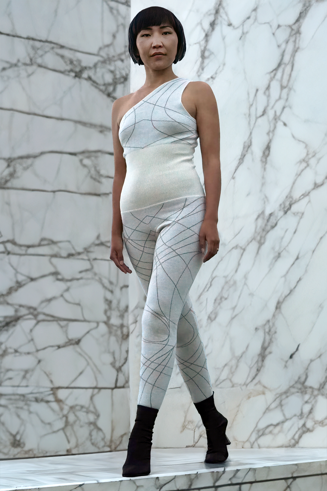 This cashmere bodysuit was designed by Khat Zorig for our "No 2. Father Sky" short film and made by one of the best cashmere makers in Mongolia. According to Mongolian creation stories, Father Sky is the creator of the universe. The Earth (Mother Earth) and Father Sky are often depicted as the parents of all beings. These two forces are seen as complementary, working together to maintain the balance of the cosmos.