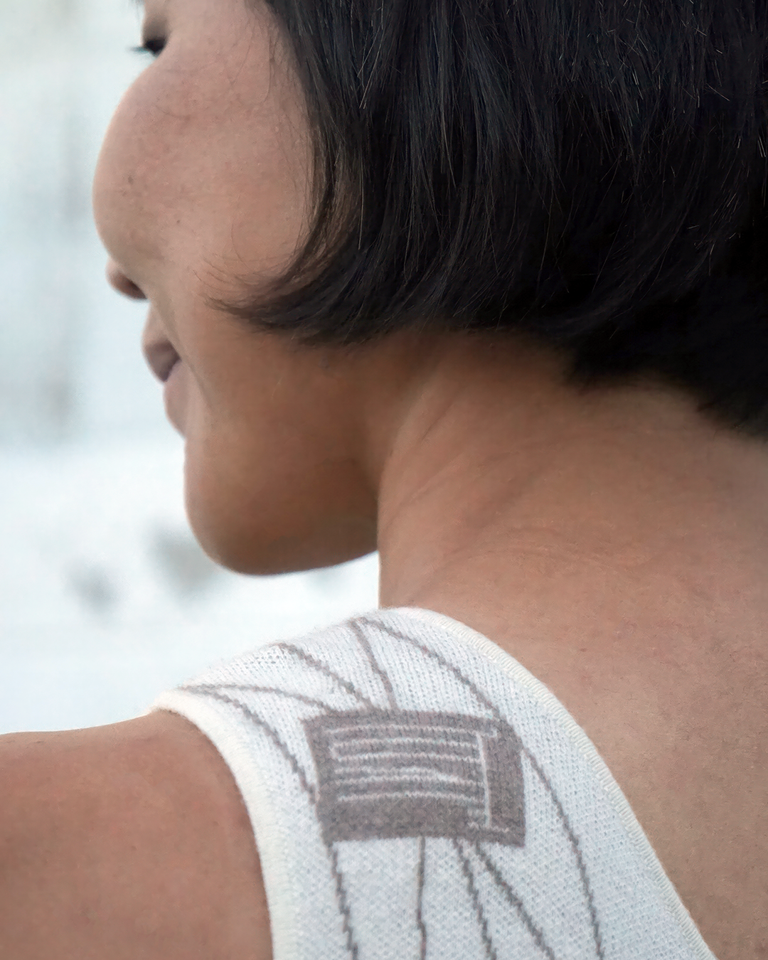 This cashmere bodysuit was designed by Khat Zorig for our "No 2. Father Sky" short film and made by one of the best cashmere makers in Mongolia. According to Mongolian creation stories, Father Sky is the creator of the universe. The Earth (Mother Earth) and Father Sky are often depicted as the parents of all beings. These two forces are seen as complementary, working together to maintain the balance of the cosmos.